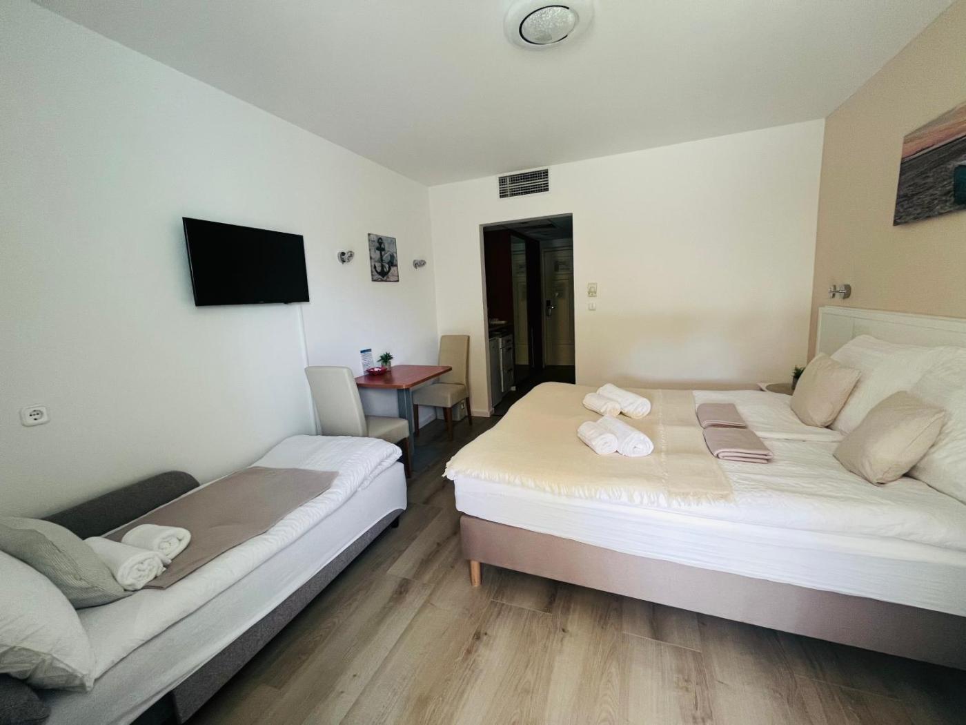 Guests staying at the apartment can relax in the garden or spa and wellness centre on-site. For guests with children, the apartment features kids pool, an indoor play area and outdoor play equipment. A bicycle rental service and a private beach area are available at Szárszó Holiday Apartman, and guests can go cycling in the surroundings.